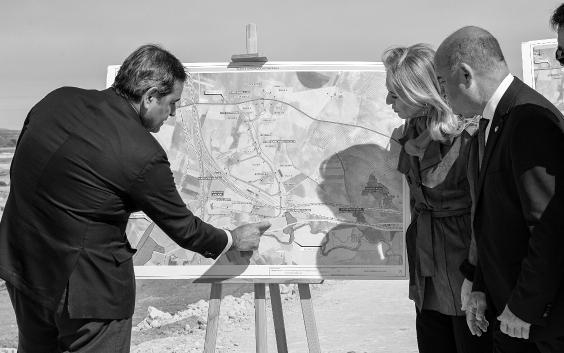 u EL PRESIDENTE DE LA DIPUTACIÓN, FRANCISCO SALADO, Y EL ALCALDE DE ANTEQUERA, MANOLO BARÓN, visitaron el terreno donde se construirá la nueva instalación, cuyos trabajos se iniciaron hace cinco meses, centrados en la construcción de muros de contención y de la cimentación del edificio