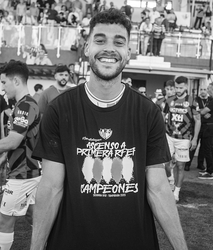 L u i s A l e j a n d r o A l c a l d e M a r t í n e z (Roquetas de Mar - Huelva, 27 años), es el capitán del Antequera CF, flamante campeón del Grupo 4 de Segunda RFEF Alcalde une su carrera futbolística con Antequera con 19 años cuando llega al equipo en la temporada 13/14 y se mantiene hasta la 18/19 donde se marcha con l a “ e s p i n i t a c l a va d a ” d e n o l o g r a r e l ascenso Estuvo dos temporadas en la Balompédica Linense y una más en el Ceuta, desde donde volvía al clubantequerano el pasado verano para afrontar una ilusionante segunda etapa encabez a n d o e l p r o ye c t o c o m o l a e s t r e l l a y capitán del equipo
