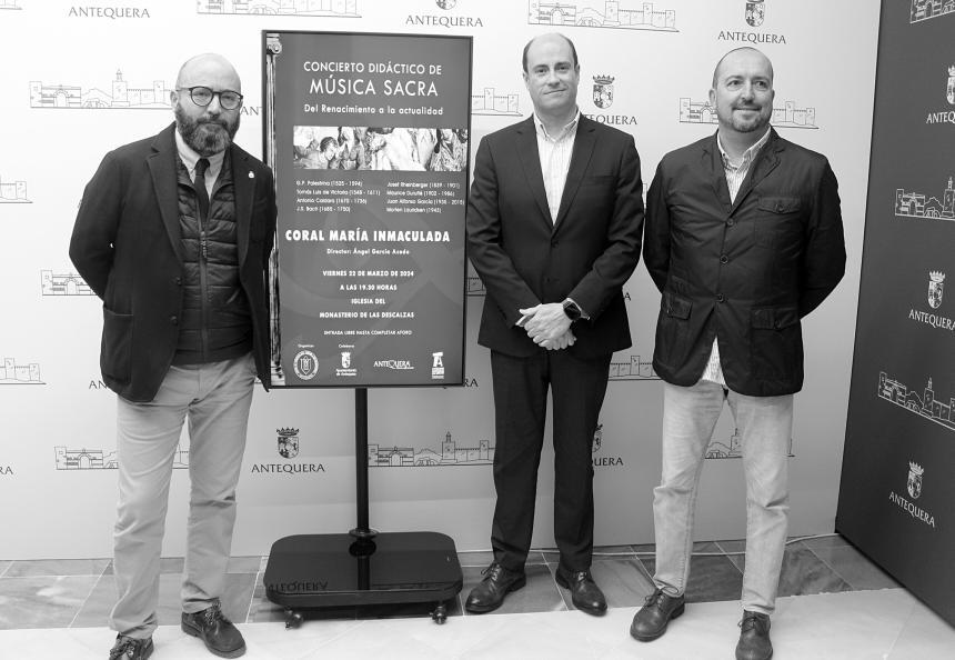 ANTEQUERA Antequera se p r e p a r a p a r a a c o g e r u n c o nc i e r t o d i d á c t i c o d e M ú s i c a S a c r a ' D e l r e n a c i m i e n t o a l a a c t u a l i d a d ' e l p r ó x i m o 2 2 d e m a r z o a l a s 1 9 : 3 0 h o r a s e n l a I g l e s i a d e l M o n a s t e r i o d e l a s Descalzas La cita, que estará a cargo de la Coral María Inmaculada, se ha presentado este miércoles por parte del concej a l d e C u l t u r a , J o s é M e d i n a G a l e o t e , y m i e m b r o s d e l a