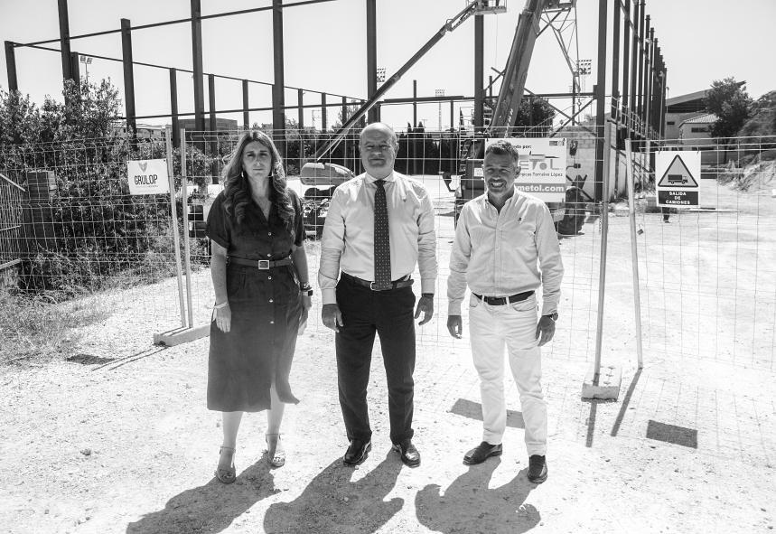 b a l o n m a n o , b a l o n c e s t o , f ú tb o l s a l a o v o l e i b o l e n l i g a regular con total seguridad y tranquilidad ante las previsiones meteorológicas”, ha apunt a d o e l r e g i d o r , q u e s e h a marcado el 15 de julio del año 2026 como fech a p ara con t ar con pistas, cubrición y vestuarios