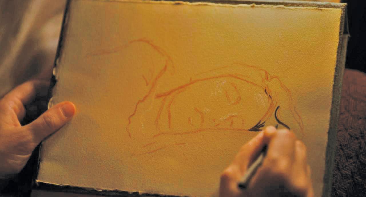 De camino a la casa que será su hogar temporal, a causa de una fuerte marea la caja donde guarda sus lienzos y pinturas caen al agua. Antes de que alguno de los dos hombres que la acompañan reaccionen, ella ya saltó con su pesado vestido al mar.