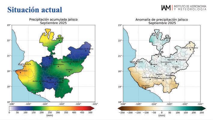 Especialistas del Instituto de Astronomía y Meteorología (IAM) de la Universidad de Guadalajara informaron que las lluvias continuarán durante octubre, especialmente desde el centro del estado hasta la zona costera. En el resto de Jalisco, se esperan menos precipitaciones.