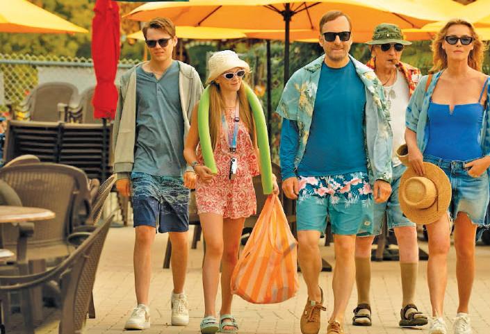 En “Nadie 2”, Hutch puede que esté manteniendo a su familia, pero también se está perdiendo una vida plena con ellos. “Hutch, como muchos padres con exceso de trabajo, no está mucho tiempo con ellos”, dice Odenkirk. “Su esposa, Becca, es agente inmobiliaria y también está fuera todo el tiempo. Los niños están creciendo y sus vidas son muy ocupadas. Quiere llevarlos al lugar que recuerda de niño, las únicas vacaciones que tomó. Plummerville, un enorme parque acuático, solo que resulta ser un pueblo vacacional de mala muerte”.