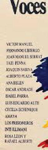 • En los programas con canciones colectivas, o sea grabadas por varios artistas, más de cuatro que pueden ser de diferentes o del mismo país, tuvimos el gusto de escuchar la llamada “Vamos Chile” que se grabó en 1990, en el disco “Voces sin fronteras 2”, con la participación de artistas españoles como Víctor Manuel, Serrat, Joaquín Sabina, Ana Belén, Amaya, Aute y Rosa León y chilenos, Alberto Plaza, Cecilia Echeñique, Fernando Ubiergo, Oscar Andrade, Tati Pena, Los Prisioneros, Inti Illimani e Isabel Parra. Los creadores de este tema son Sergio Bravo y Jaime de Aguirre.