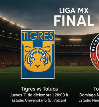 Toluca y Tigres se enfrentarán en una serie inédita por el título de la Liga BBVA MX, en lo que promete ser una final histórica. Ambos equipos llegan como los mejores de la fase regular: Toluca fue líder general y Tigres terminó en segundo lugar. Será la primera vez que se midan en una Final, aunque en Liguillas el historial favorece ampliamente a los felinos, con seis victorias en siete enfrentamientos previos. Ahora, con el campeonato en juego, todo comienza de cero. Partido de Ida Jueves 11 de diciembre | 20:00 horas Partido de Vuelta Domingo 14 de diciembre | 19:00 horas