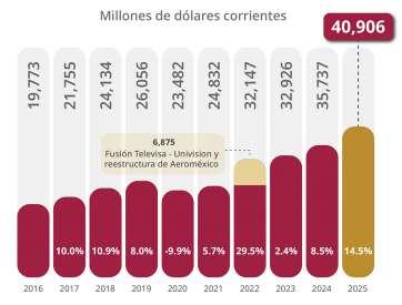 México rompe récord en Inversión Extranjera Directa; subió 15% respecto al año pasado