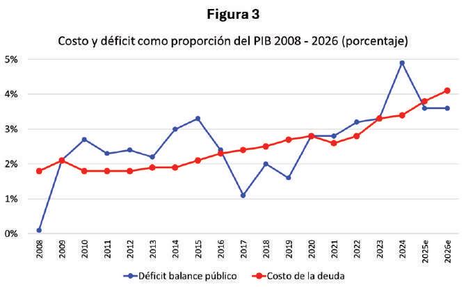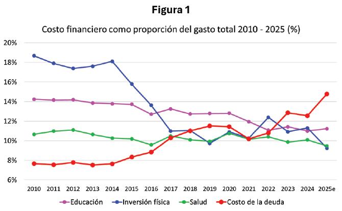 Costo financiero de la deuda como proporción del gasto total 2010 - 2025 del 20