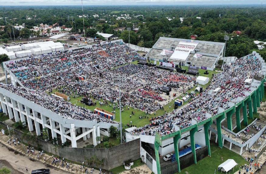 En apenas cuatro fines de semana, la presidenta de México, Claudia Sheinbaum Pardo, recorrió el territorio nacional en una gira que reunió a más de medio millón de mexicanas y mexicanos en 30 estados. El objetivo fue rendir cuentas sobre las acciones de su primer año de gobierno, bajo un modelo que ella ha definido como de “cercanía al pueblo”. PAG. 5