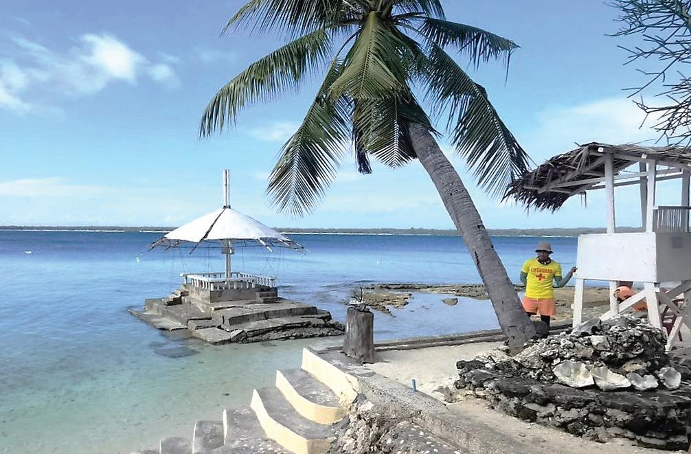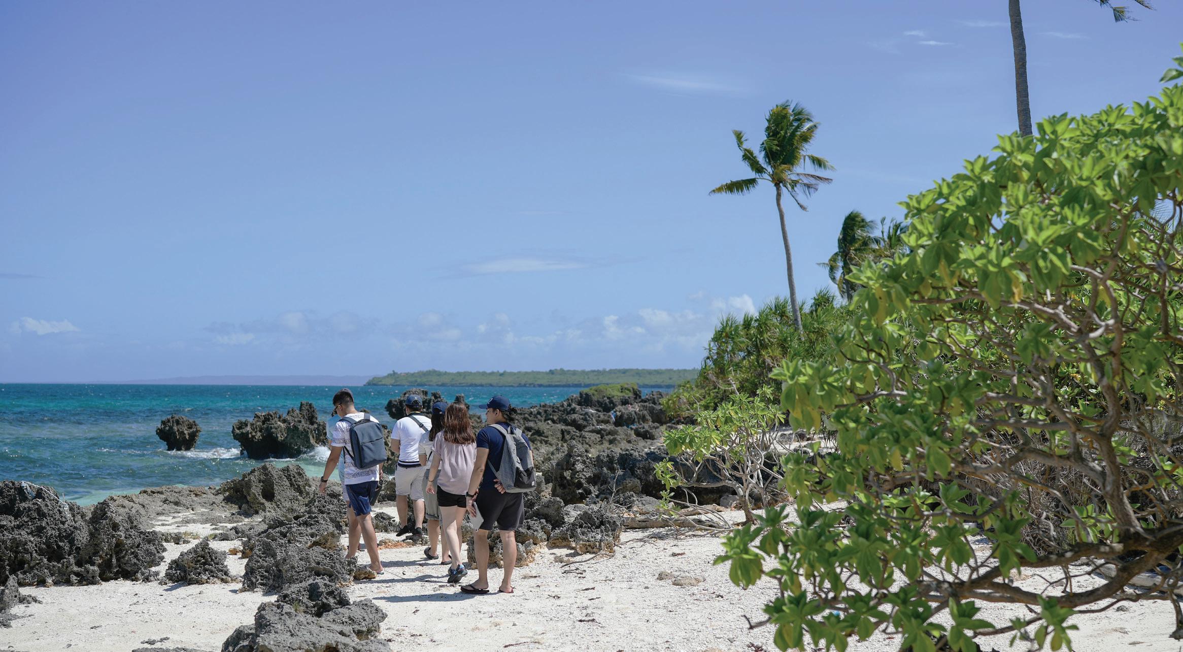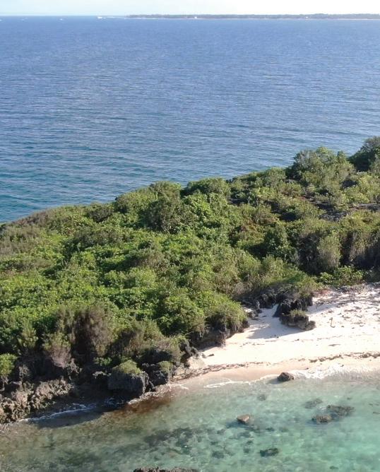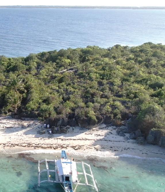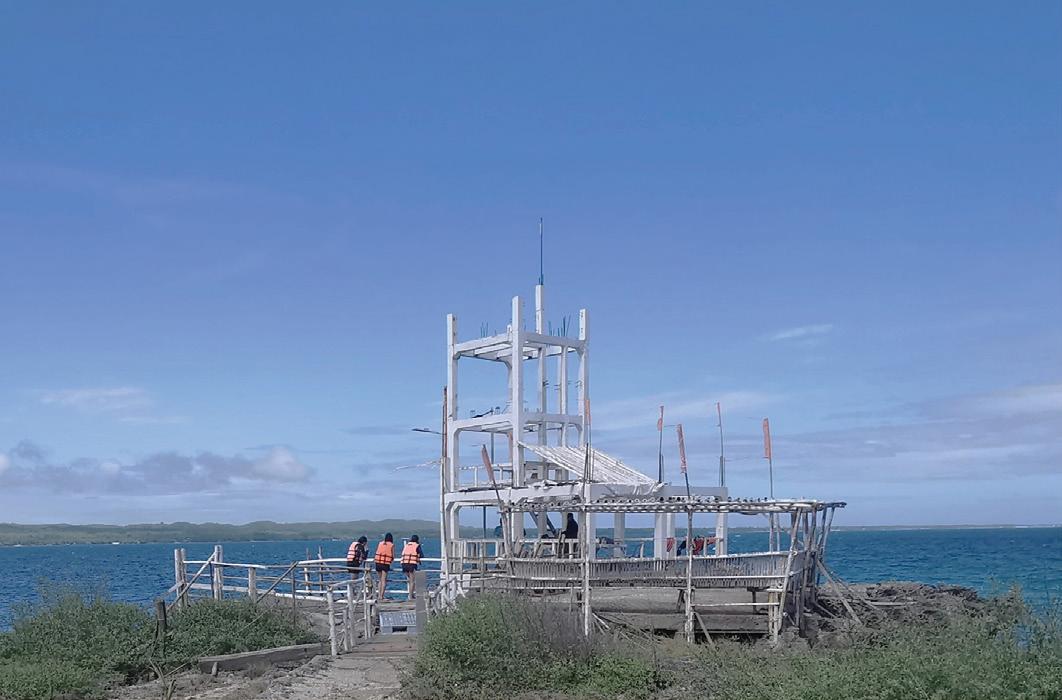 Top The island takes form of a crescent shape. Below Existing structures are found to impose areas of concern. (e.g. permanent structures encroach on the shoreline, no proper waste treatment facility)