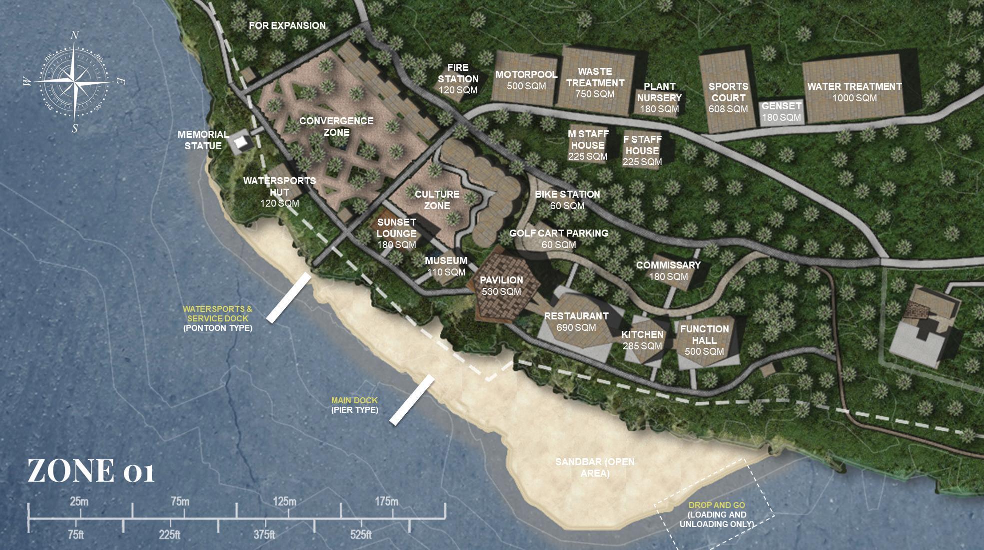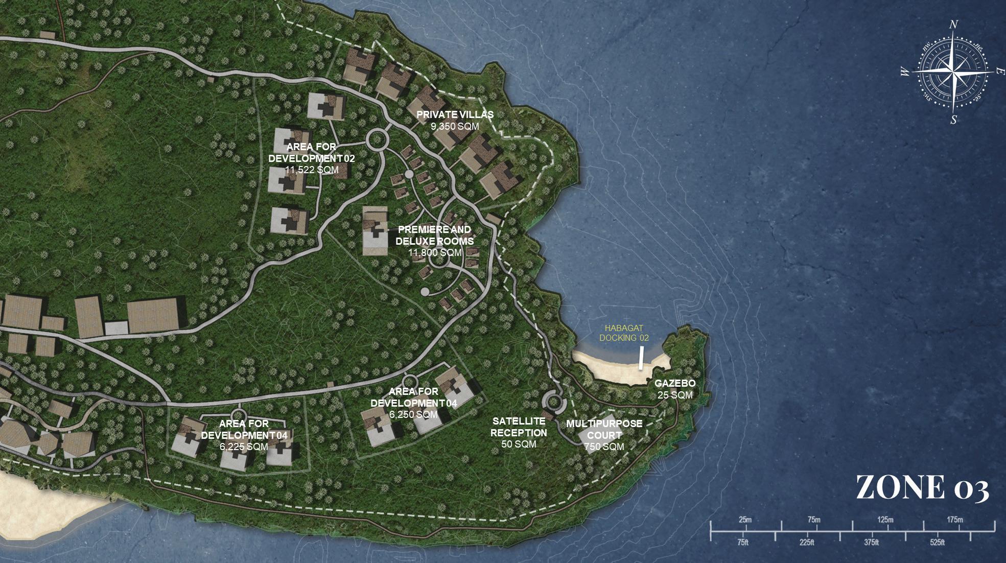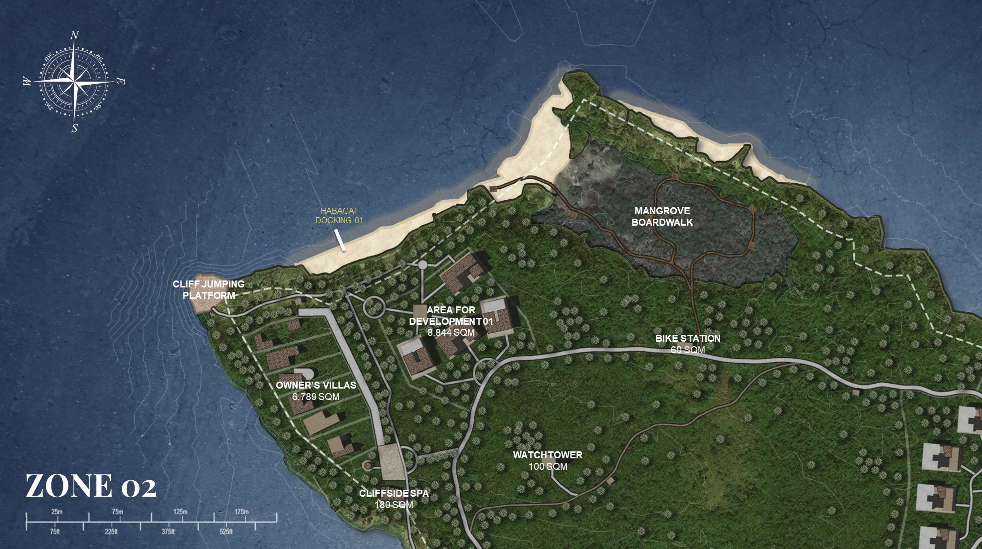 Right Zone 02 focuses more on the private spaces such as overnight villas, areas for development, and a private docking area during Habagat Season.