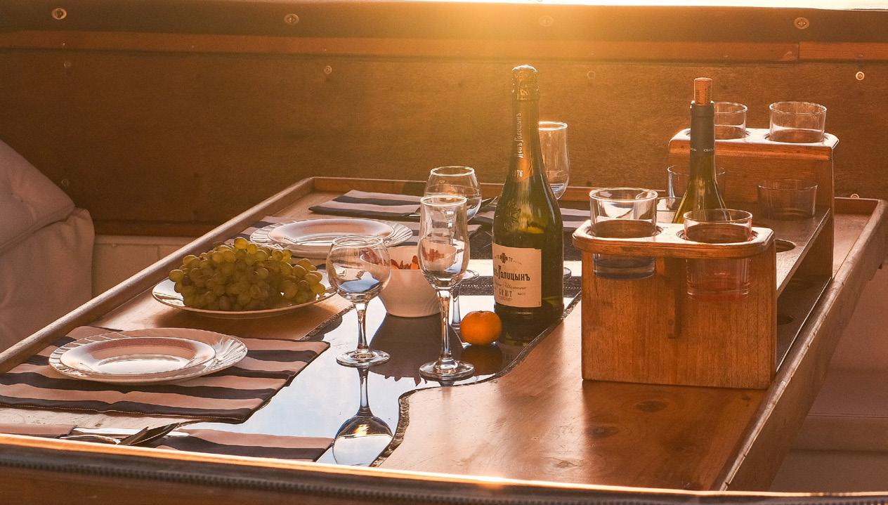 Soon after departing Cannes, they are amazed at the Illes de Lérins, two magical islands with an 11th-century Cistercian monastery, and then enjoy chilled champagne and hors d’oeuvres and they again cruise past the worldfamous Cote d’Azur and return to their luxurious private villa at St. Tropez.