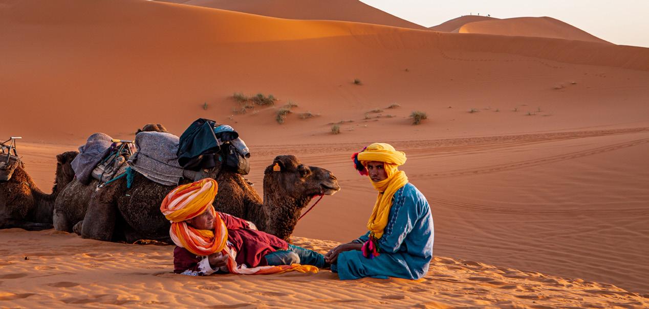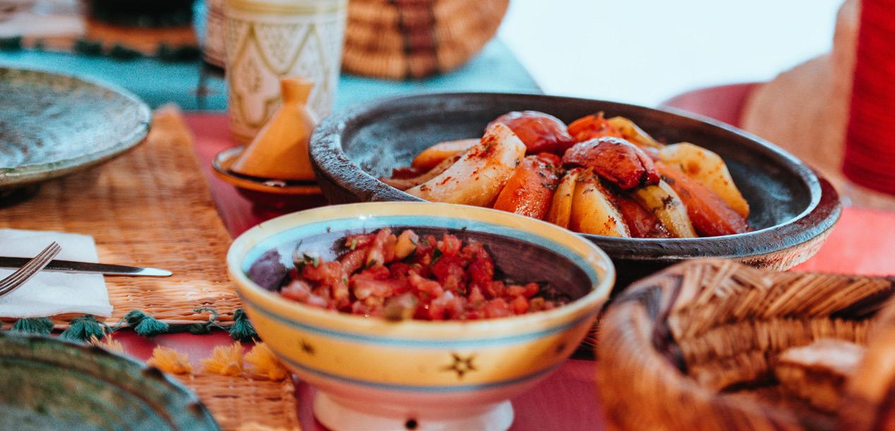 Lacure guests are thoroughly enjoying their vacation at the evocative home Ezzahra in Marrakech. After they enjoy breakfast on the terrace, their private guide arrives to unlock the beauty and history of Marrakech for them. They begin their journey at the Jardin Secret before entering the alluring old town and the Koutoubia Mosque, a key piece in Morocco’s history, built during the 12th century under the Almohad Dynasty. Next, they visit the exquisite Bahia Palace, which fascinates everyone with its fine Moorish architecture, gorgeous ceramic tiles, and the majestic beauty of its colors. Finally, they wander through the fascinating labyrinths of the world’s most vibrant and colorful openair marketplace - bazaars full of charm & character, stalls packed with mysterious potions, colorful piles of spices, essential oils, exquisite hand-knotted rugs, and so much more.! They enjoy a leisurely lunch of authentic Moroccan Cuisine in the garden of Le Jardin Restaurant before returning to the luxury of their villa and swimming pool.