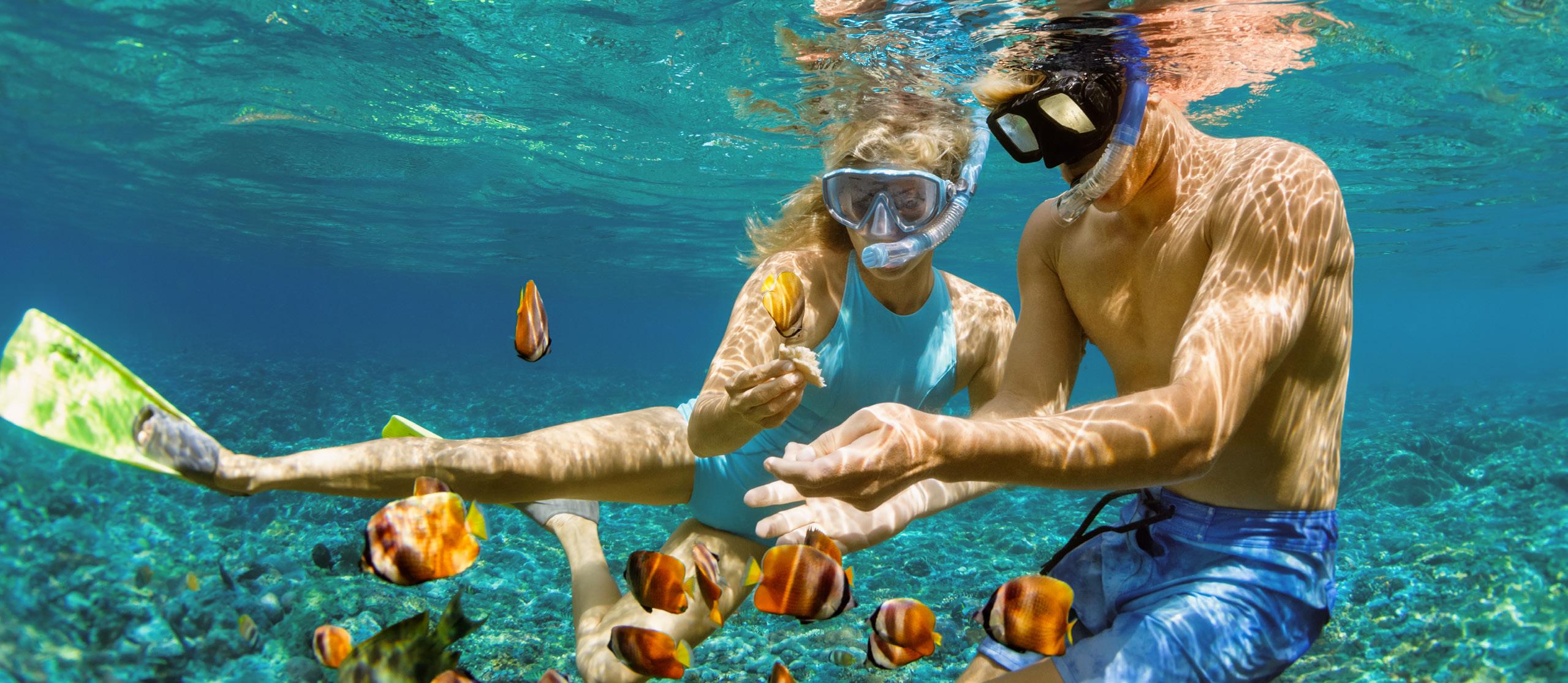 Lacure guests are two families enjoying the beachfront luxury of Villa Kiko. One morning after lunch by the pool, the families are driven south along the coast and board a launch that takes them out to Atlantis Submarine. After their incredible underwater adventure, they board a private speedboat and cruise up the coast to Mullins Beach Bar, where the children enjoy their first scuba diving lesson while their parents enjoy cocktails and appetizers in this sublime setting.