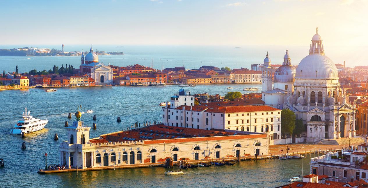St. Marks Basilica and its private collection and the truly unforgettable views of Piazza San Marco from the balcony. Next, they stroll along the majestic Grand Canal and enjoy a delicious lunch at the iconic Harry’s Bar. After lunch, they again stroll the Grand Canal and cross the Ponte de Academia to explore The Peggy Guggenheim Collection and its extraordinary works of modern art. Next, they visit the Doge’s Palace, its opulent apartments, and the Hall of The Great Council.