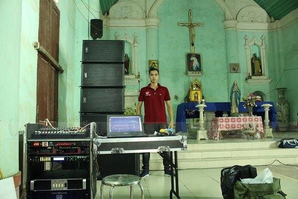 Lắp đặt dàn loa array cho nhà thờ phục vụ sân khấu