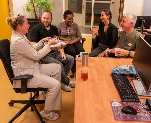 Bij Argos Zorggroep in Spijkenisse nam niemand het kwartiertje koffiepauze. Dus ontstond het idee om de pauzes op te sparen tot een half uur, zodat er net iets meer tijd is om elkaar te spreken, vertelt aios ouderengeneeskunde Mark van Barele. “We hebben één grote mand met chocoladerepen en die vullen we allemaal wekelijks bij met een nieuwe reep. Die mand zetten we op vrijdagmiddag om 15.00 uur in ons kantoortje en dan hebben we een half uur een gezellig kletsmoment. We vertellen elkaar over de weekendplannen en praten zo min mogelijk over het werk. Het populairste stukje chocola komt van Milka, al gaan de Celebrations ook hard.”