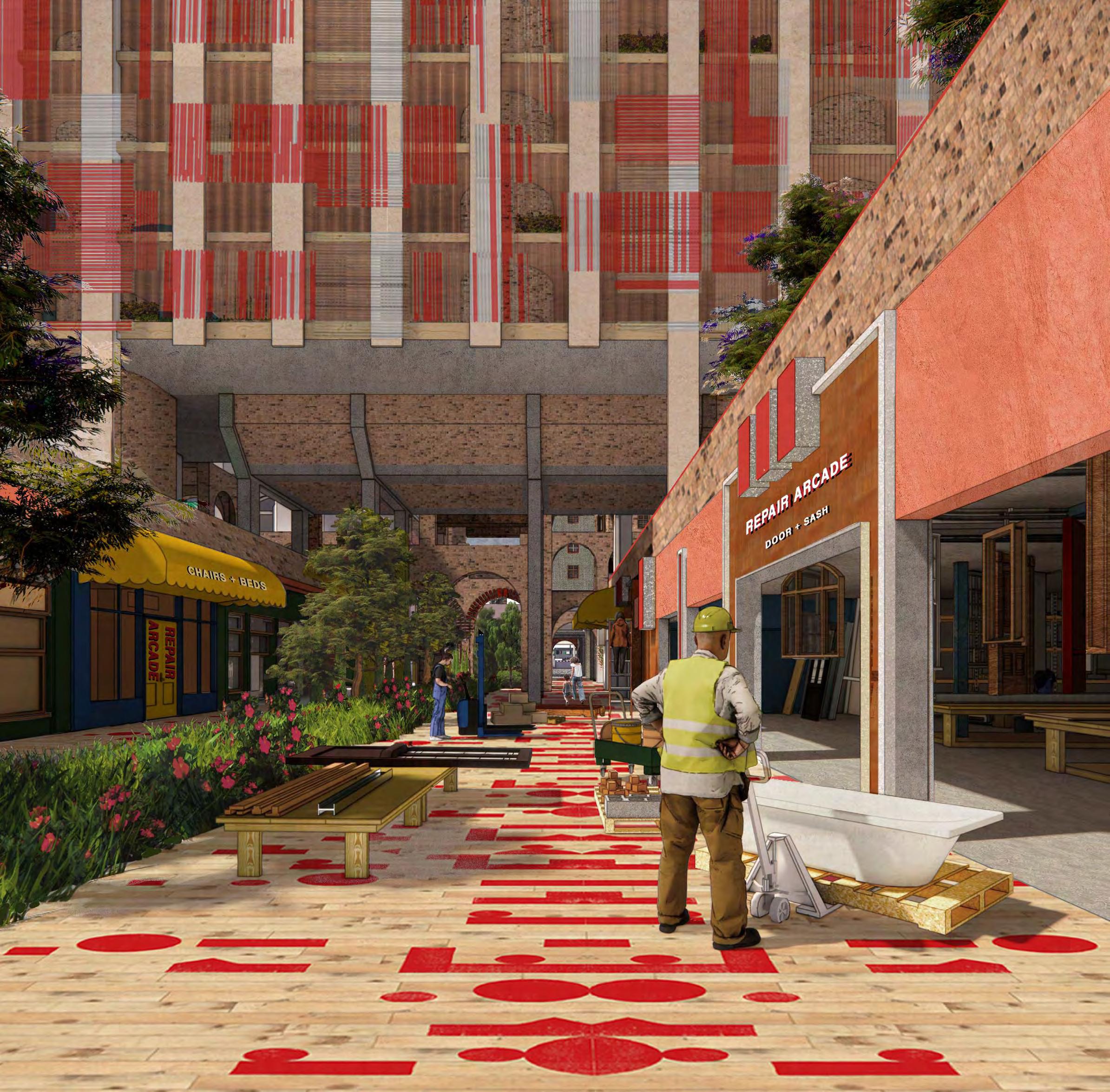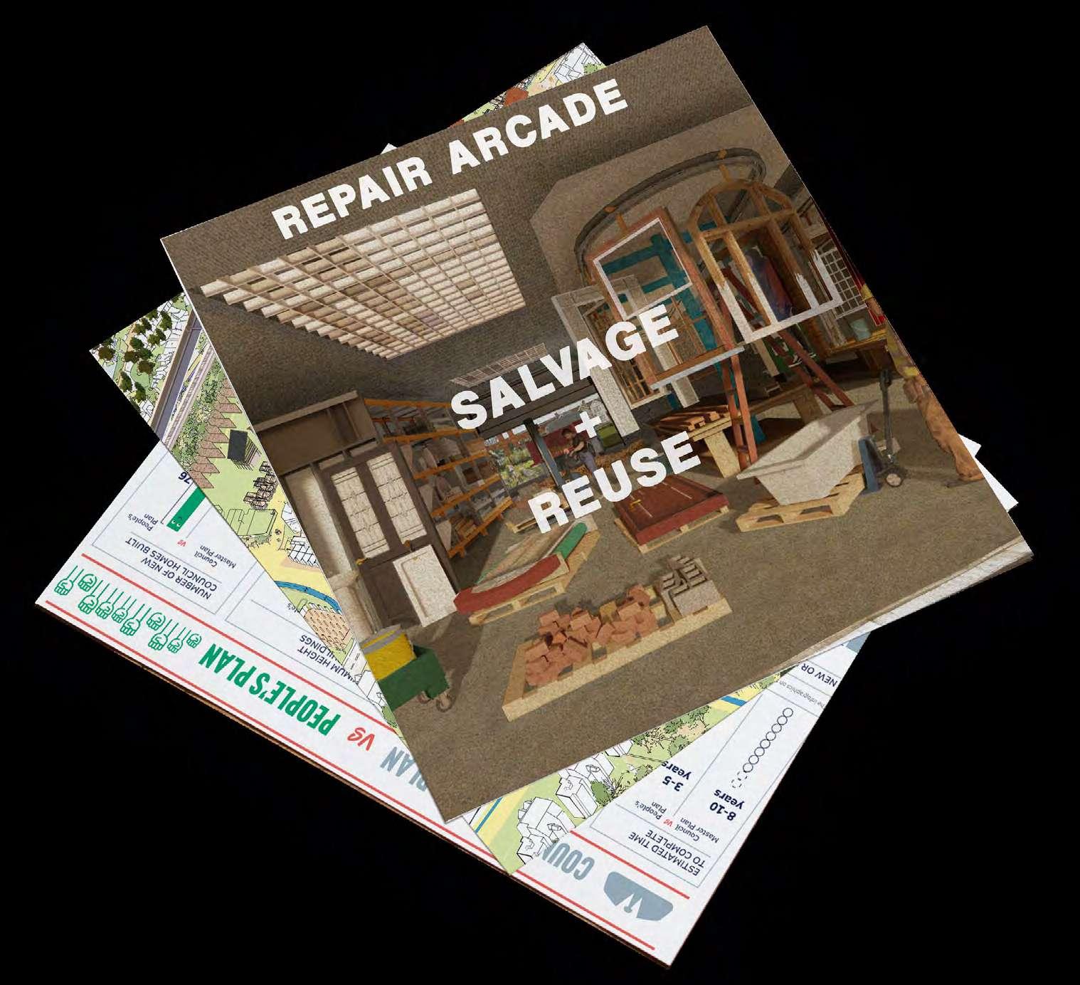 Catford Mews Repair Arcade where locals can take their belonging to get them mended or collect salvaged building materials for housing initiatives REPAIR ARCADE PROMENADE