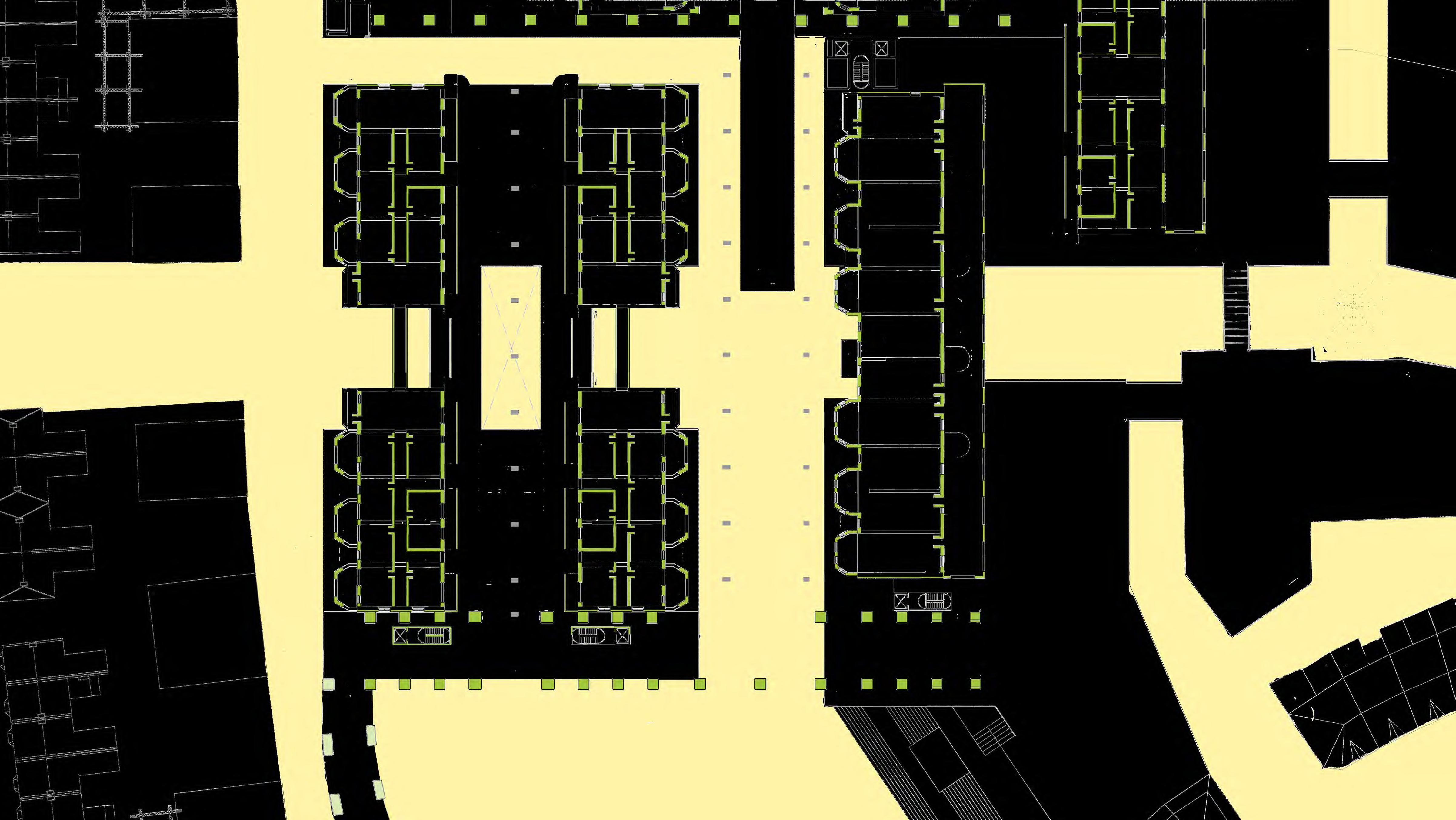 The community proposal for the adaptive reuse and retrofit of Milford Towers is to improve the existing quality of housing, the thermal and environmental performance, and the diversity of occupations and facilities whilst densifying the building’s housing stock.