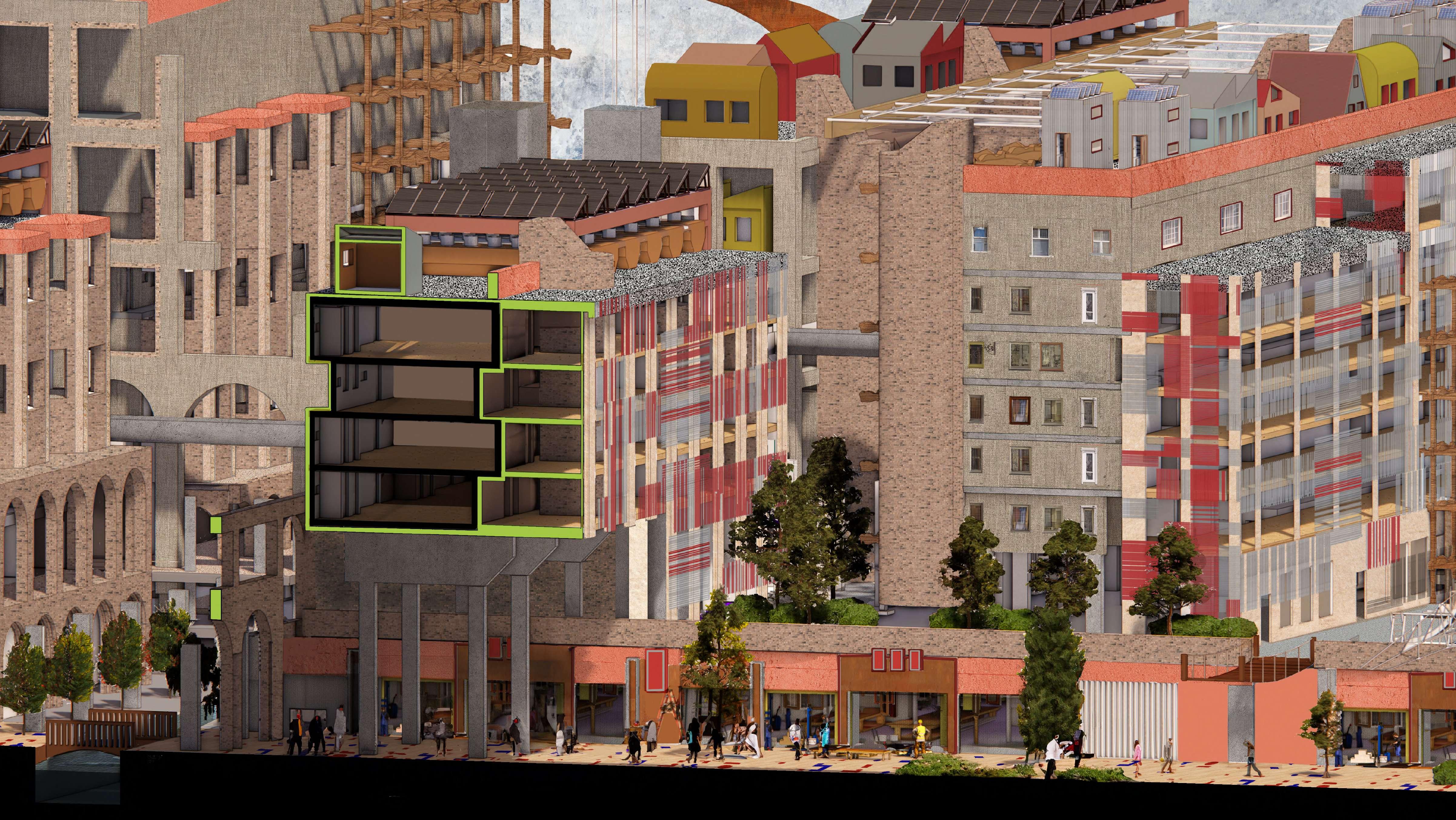 have focused on a retrofit-first approach to my urban vision of Catford to build upon the built, recycle salvaged construction materials and renew existing buildings. BUILD UPON THE BUILT