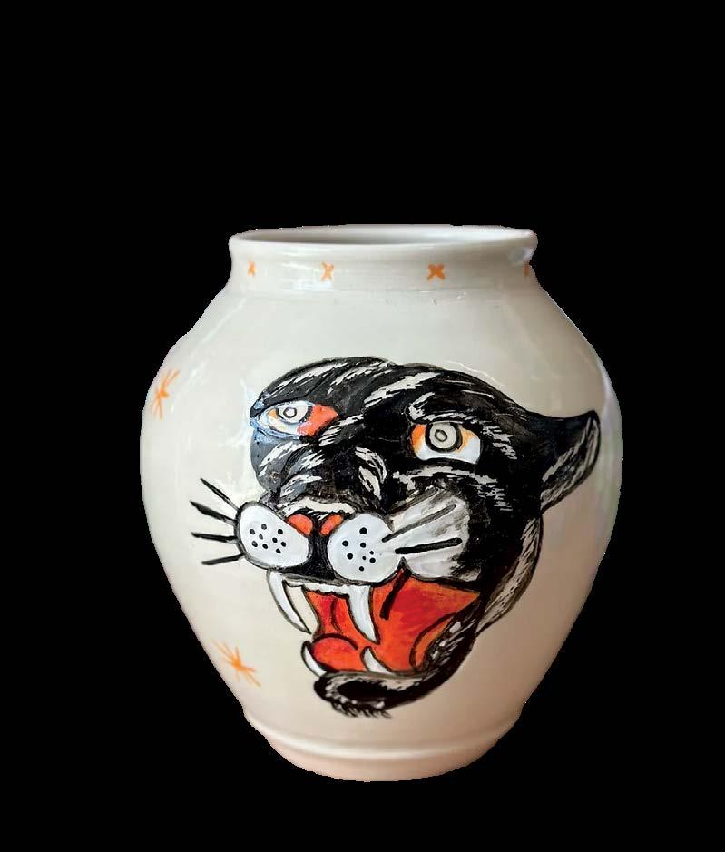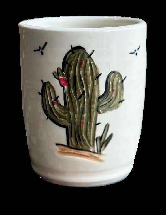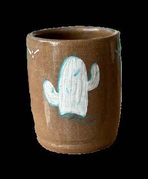 “Artwork is a mix of things I see in the wild, or a riff on amazing artists in my community, mostly in design or some sort of flash tattooing. All pieces are one of a kind, even the tumblers and copitas. Thats the beauty of wheel throwing.”