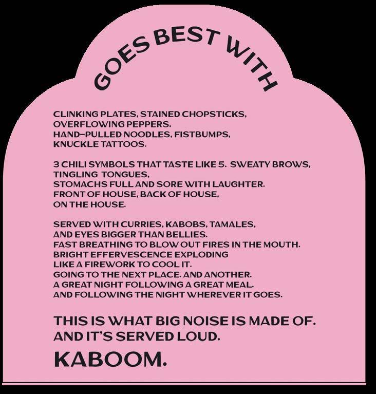 Chosen Brewmasters from around the world, and the Chefs who forge our favorite iconic dishes, sparked the creation of the borderless beer. A beer that feels at home on any table, in any restaurant. A beer that goes best with good food and the good times that inevitably follow. A beer light enough to drink best with one of everything on the menu. A beer with explosive effervescence for your palate. A beer that tastes like a beer, but doesn’t aftertaste like a beer. @bignoisebeer