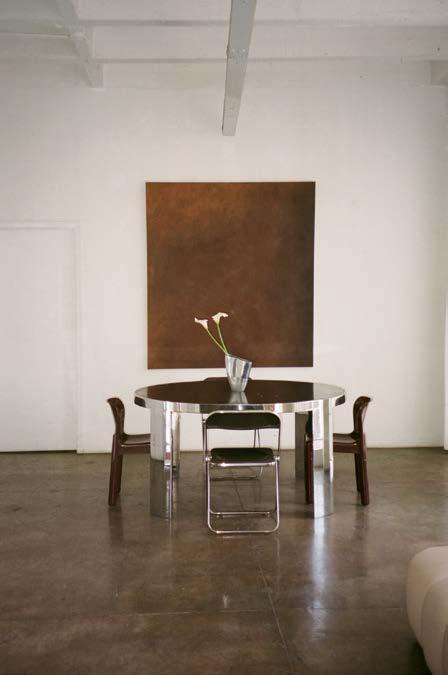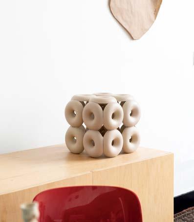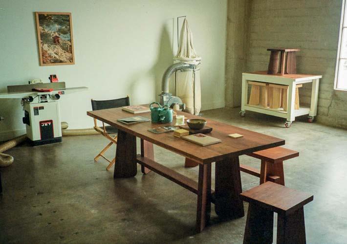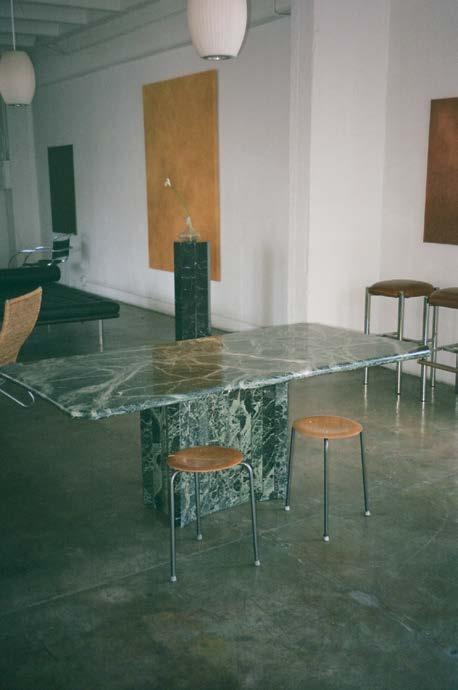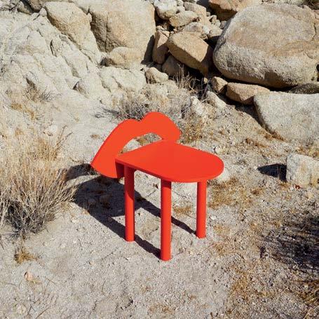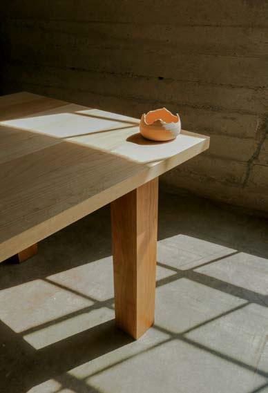 1. Why did you get into design? I began making furniture about 10 years ago. At the time I found most design objects either too stodgy and traditional or wildly out of my price range. So I decided to launch myself into the industry to produce what I wanted to see. 2. Who / What / Where is inspiring you right now? The myriad, small-brand US basedmakerswhoarebendingtraditionalproportionsandmaterialusage. Also, the bulky forms of incidental architecture of concrete highway-overpass buttressesandpavedwaterways,andtheformsofMayanhieroglyphs. 3. What was the first thing you designed? How would you change the design if you were to design it again today? My first and longest-running series is the Boyle Height shelves. I riffed off of temporary support structures of construction-in-process, triangulating thin hardwood inlays and brackets to engineer for different stress directions. The result is an over-engineered, thrifty use of material of chaotic composition. 4. What are you most excited about lately? My Glyph table series is fun to produce. Chunky wood, bold gestures, intuitive and impulsive and surprisingly practical and domesticated. They are weird, but approachable. 5. What’s your favorite design object you own? What’s the dream design object on your list? IlovetheEntlerceramicchandelierthathangsabovemydining table. The light is very alien in appearance and compliments the anthropomorphic table I made and designed. 10. If you could give your younger self one piece of advice / one rule to follow, what would it be? Establish a unique formal languageanddevelopit. Letyournextpiecebeinformedandgrowuponlessons learned from your last piece: what was impactful and what wasn’t. I think there’s currently an abundance of artists-turned designers right now, so it’s crucial to have your own voice and to avoid being derivative. 11. What would your dream collaboration be? Why? I would love to do an artist residency at the Kohler facilities in Wisconsin to have access to the foundries and technicians in the facility.