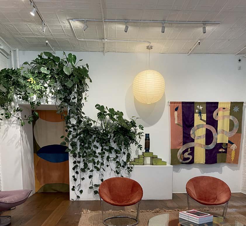 Laun and DE share an office space in DTLA. Together they have fiilled the office full of colorful artwork (with pieces by Alyssa Geerts), furnitures from their clients and good vibes for hosting events.