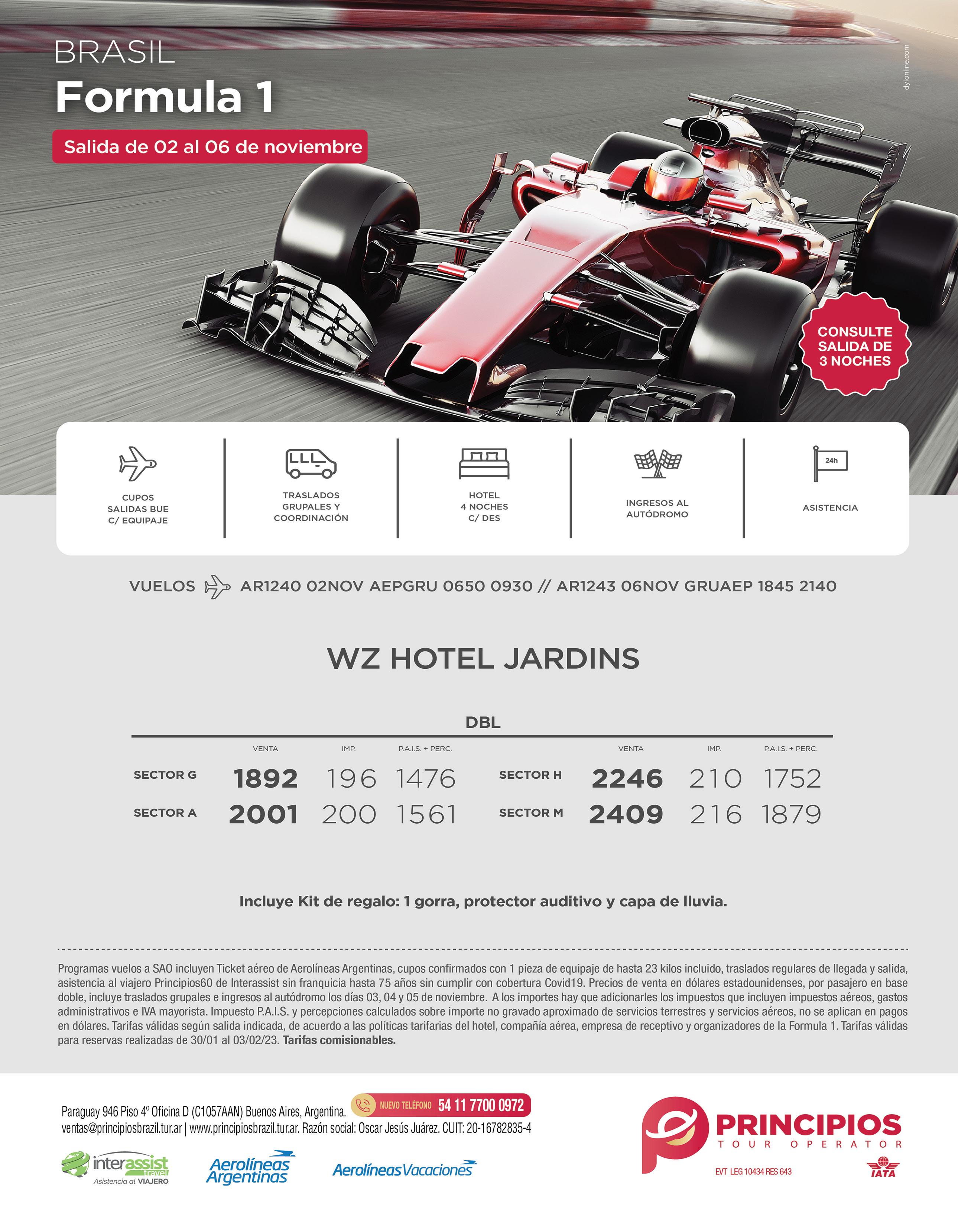 Para concluir comentó que, si bien son mínimas las cotizaciones para la baja o julio, existe una gran demanda para ver la F-1 en Brasil”.