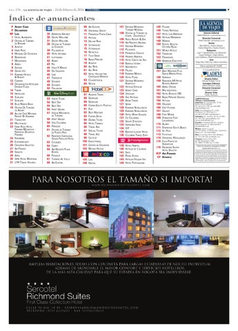 Director Editorial Fabián Manotas <colombia@ladevi.com> Dirección Comercial Adrián González <adrian@ladevi.com> Ventas Betty Molina, Jessica Sánchez, Andrea Mogollón y Claudia Álvarez Redacción Juan F. Subiatebehere,Juan Sebastián Duque Rodríguez, Diego Gantiva, Luisa Valdivieso, Alberto Gianoli (corrección) Arte Diego Imas, Pablo Paz, Gabriel Cancellara Marca registrada Nº 154.652 Es una publicación de: