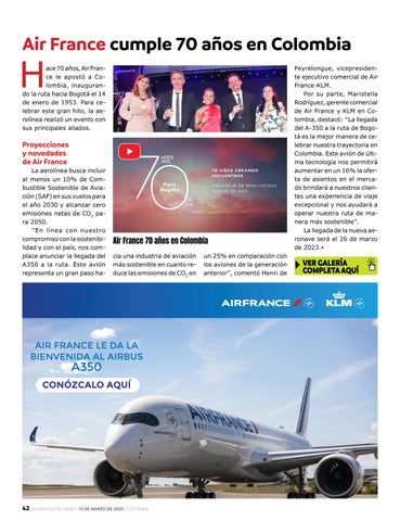 QUINCENARIO PARA PROFESIONALES DE TURISMO 13 DE MARZO DE 2023 - AÑO XXI - ED. Nº 362 CO LO MBIA AIR FRANCE. 70 años en Colombia 42 HOTELDO. Plan de posicionamiento en la región 10 DAVID COLLADO: “Uno de cada 10 turistas que recibe República Dominicana llega de Colombia” 18 EMBASSY SUITES BY HILTON. Gran apertura en Aruba 38 OPINIÓN MARÍA CLAUDIA LACOUTURE Que la inseguridad no nos embargue 20