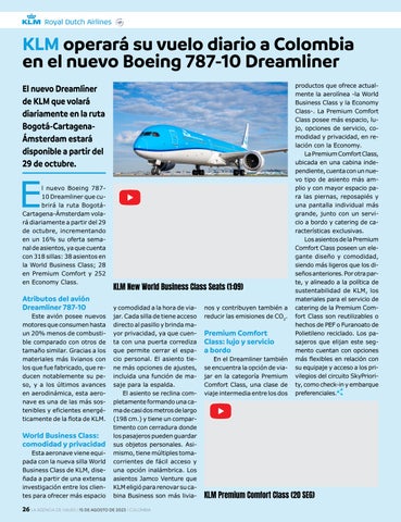 KLM operará su vuelo diario a Colombia en el nuevo Boeing 78710 Dreamliner 26