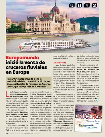 Para 2024, Europamundo tiene la exclusividad de la comercialización de los cruceros fluviales de Politours en América Latina, que incluye más de 100 salidas.