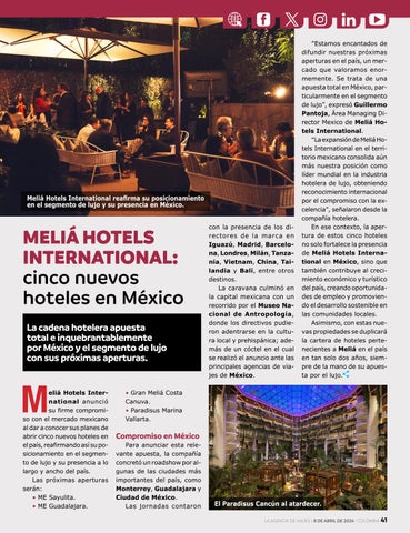 “Estamos encantados de difundir nuestras próximas aperturas en el país, un mercado que valoramos enormemente. Se trata de una apuesta total en México, particularmente en el segmento de lujo”, expresó Guillermo Pantoja, Área Managing Director Mexico de Meliá Hotels International