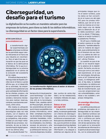 bersecurity in travel goes beyond technology” (La ciberseguridad en los viajes va más allá de la tecnología), Robert Cole, analista senior de Phocuswright, ahonda en las características del sector que lo hacen susceptible a los piratas informáticos, entre ellas: complejas arquitecturas de sistemas; tecnologías centrales heredadas; múltiples puntos de contacto con los empleados y los clientes; escasez de personal y alta rotación de los mismos; baja sofisticación técnica; operaciones dispersas y localiza-