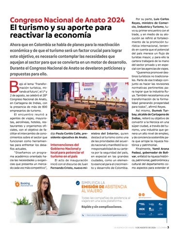 Ahora que en Colombia se habla de planes para la reactivación económica y de que el turismo será un factor crucial para lograr este objetivo, es necesario contemplar las necesidades que aquejan al sector para que se convierta en un motor de desarrollo. Durante el Congreso Nacional de Anato se develaron peticiones y propuestas para ello. 3