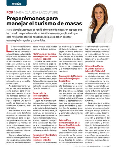 OPINIÓN MARÍA CLAUDIA LACOUTURE Preparémonos para manejar el turismo de masas 47