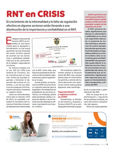 con el RNT, entre ellas, que todos los prestadores de servicios turísticos debían registrarse para operar legalmente en el país.