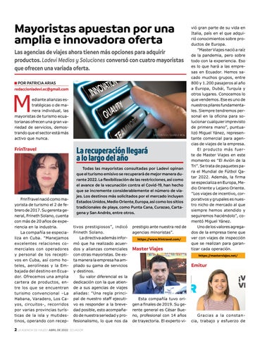 2 LA AGENCIA DE VIAJES l ABRIL DE 2022 l ECUADOR