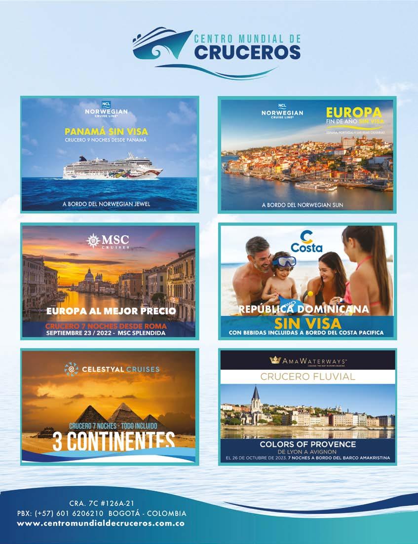 Creada en 1992, Mundial de Cruceros introdujo en Colombia el producto Cruceros, y hoy representa y comercializa un portafolio de 18 compañías del rubro.MUNDIAL DE CRUCEROS