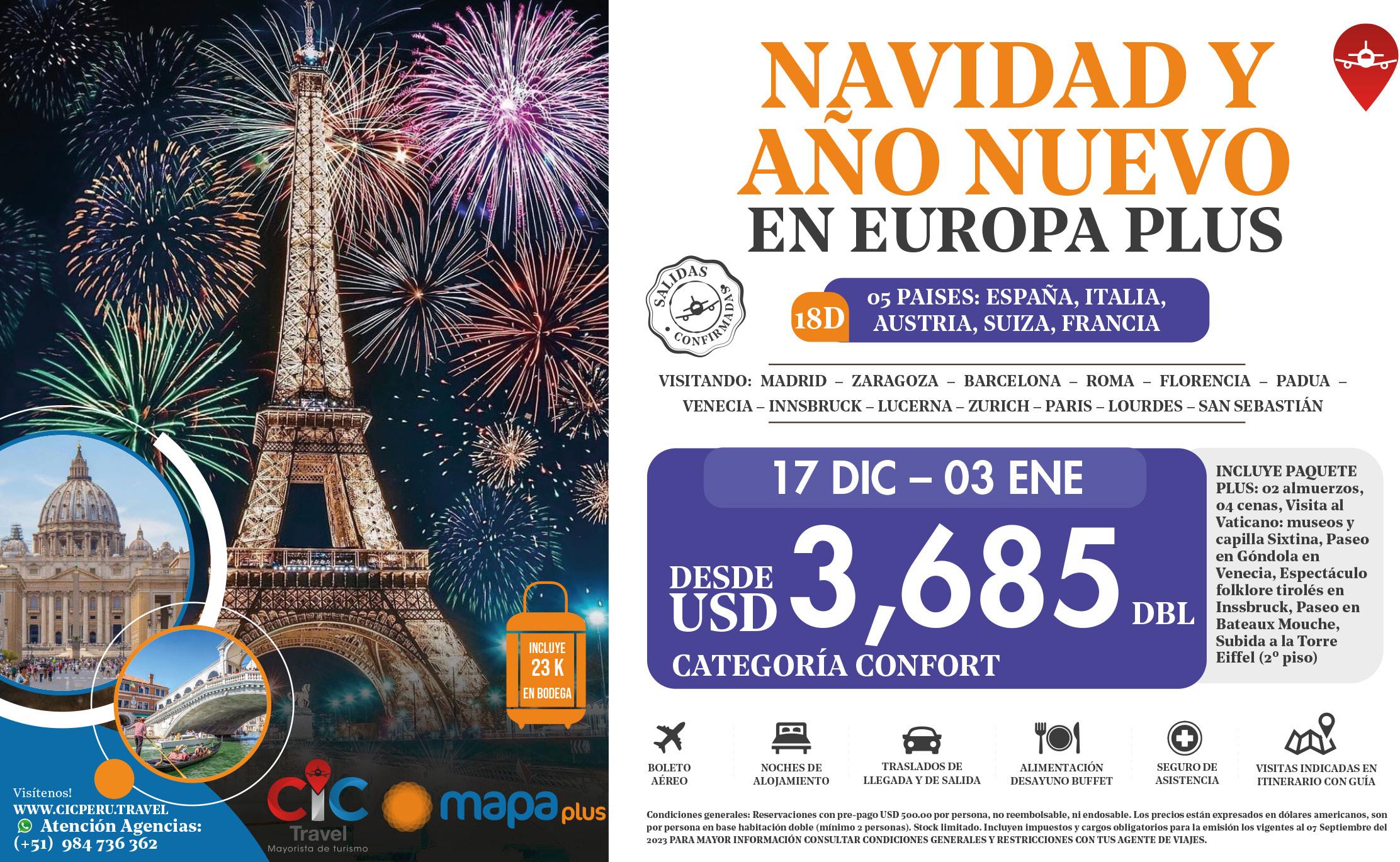 Precios en USD dólares y en habitación doble (mínimo 02 pasajeros viajando juntos). Oferta TARIFA DINÁMICA válida hasta el 31 octubre 2023 y/o hasta agotar stock. TARIFAS DINÁMICAS están sujetas a disponibilidad y cambios de precios debido a su condición de tarifas referencial (dinámicas) es decir que es solo una guía. Volaris permite 01 artículo personal + 01 equipaje de mano –carry on, el peso combinado del objeto personal y equipaje de mano no debe exceder 20kg; y 01 equipaje de bodega de 25kg. Sky Airlines permite 01 bolso de mano de 10kg, 01 equipaje de mano – carry on de 10kg y 01 equipaje de bodega de 23kg. Consultar medidas y dimensiones con la línea aérea. Boletos aéreo no reembolsables, no endosables ni transferibles. Hoteles sujetos a disponibilidad. Precios sujetos a cambio sin previo aviso. Tipo de cambio referencial S/4.25, debido a la volatilidad del dólar consultar antes de realizar el pago. Para pagos con tarjeta de crédito de los bancos BCP, BBVA, SCOTIABANK, BANBIF, INTERBANK, recargo del 2%, para tarjetas de otras entidades financieras o del exterior recargo del 5%. Material exclusivo para agencias de viajes. DISCOVER MAYORISTA DE TURISMO SAC. RUC 20601402506.