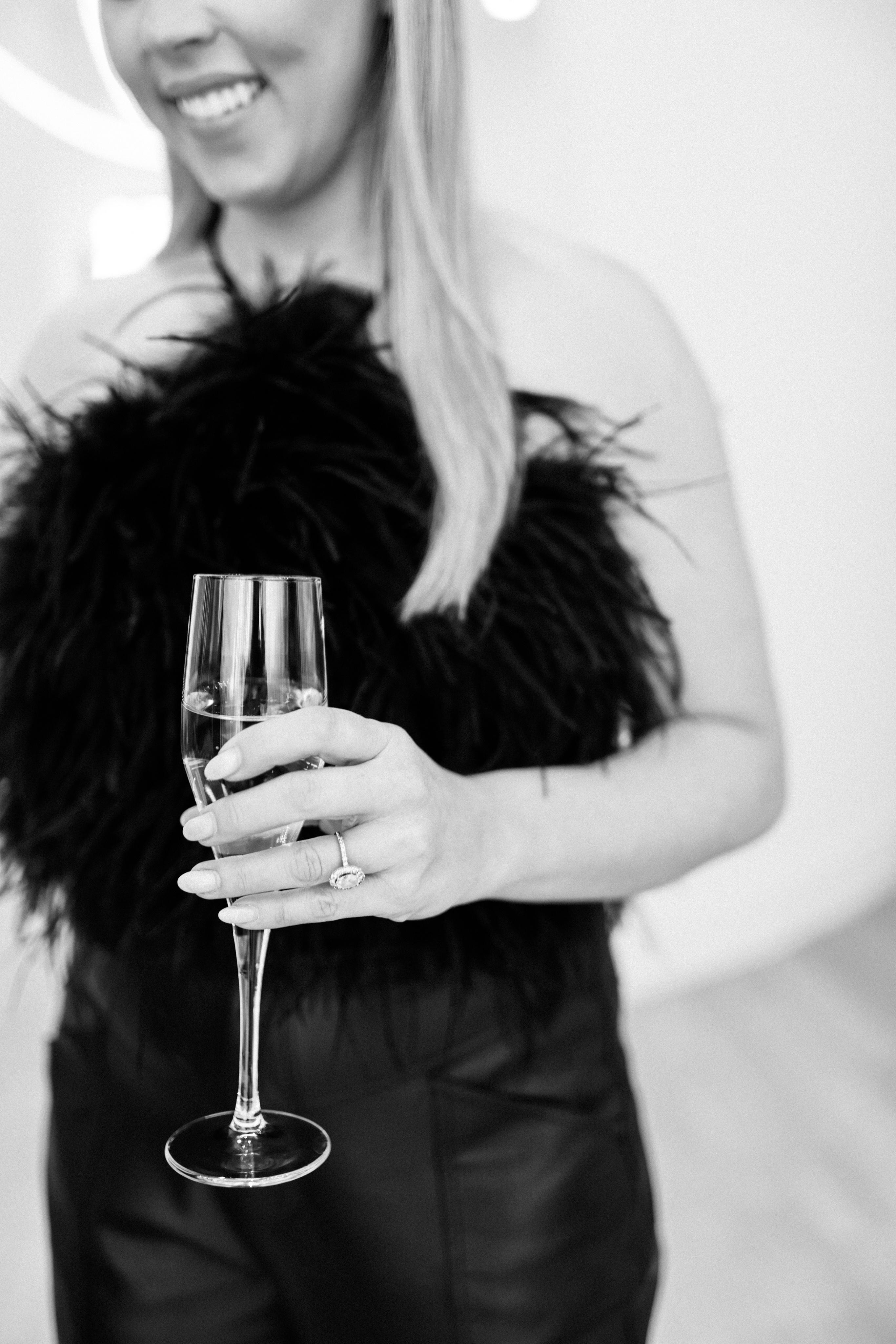 The precious four-legged guest made a few additional appearances being modeled on the cake & photo booth accessories Izzy was also featured on a look-a-like cookie serving as the garnish for the late night treat -- espresso martinis Kelsey’s love for desserts was captured through the dessert table filled with local sweet treats while Jeff’s love for music was showcased with the record guestbook (Crazy Love, by Van Morrison) and lively band that had guests dancing the night away. Kelsey exited her wedding reception in a Sareh Nouri, second look mini dress.
