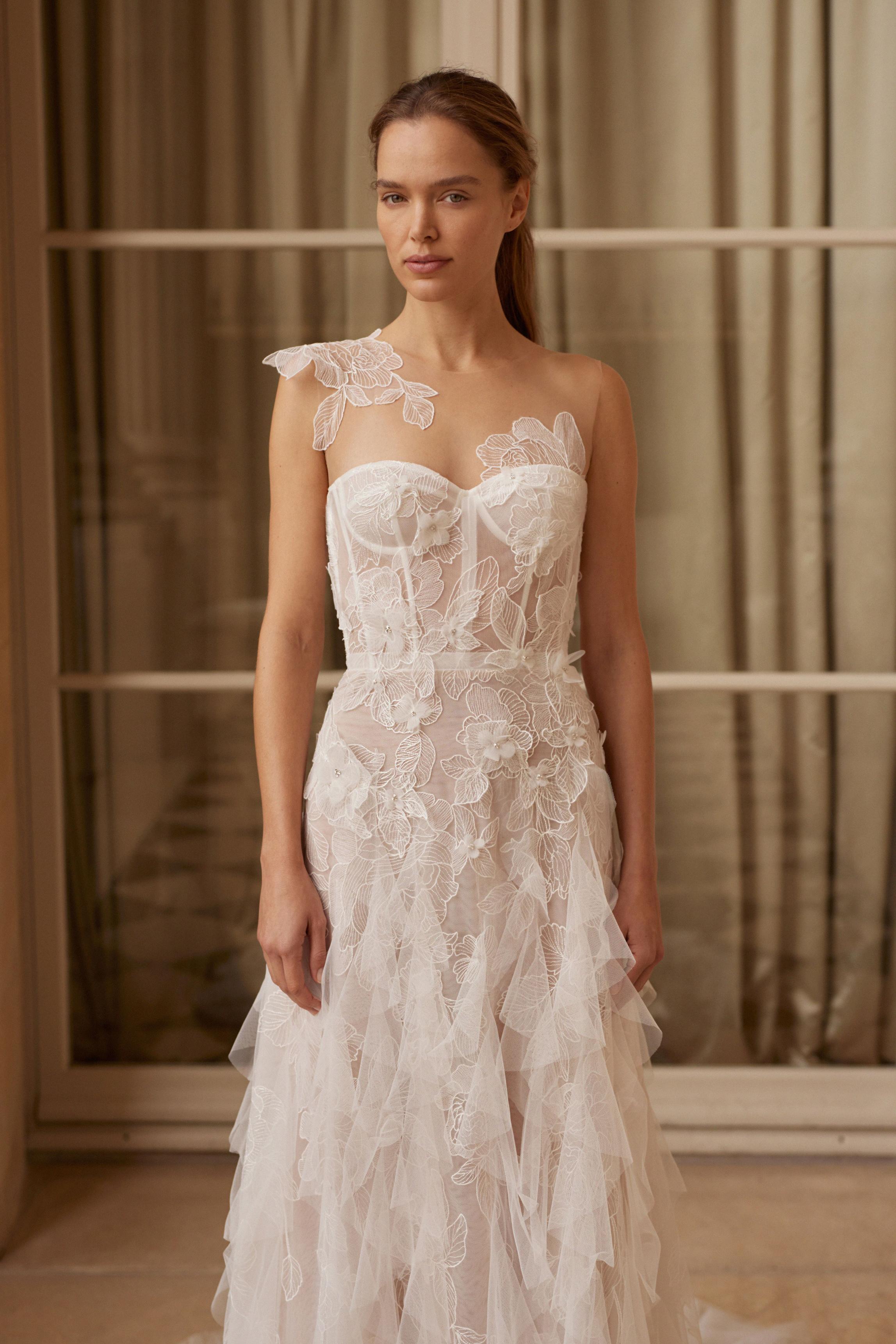 As one of the leading couture houses in Tel Aviv, Mira Zwillinger focuses on the craft of creating made-to-measure gowns with a sophisticated point of view. The brand is driven by the passion to infuse contemporary silhouettes with ethereal detailing, handmade embroidery, beading, and extraordinary textures that are handcrafted from scratch - ensuring each bride leads with an aura of dazzle, sophistication, and sensuality on her wedding day.