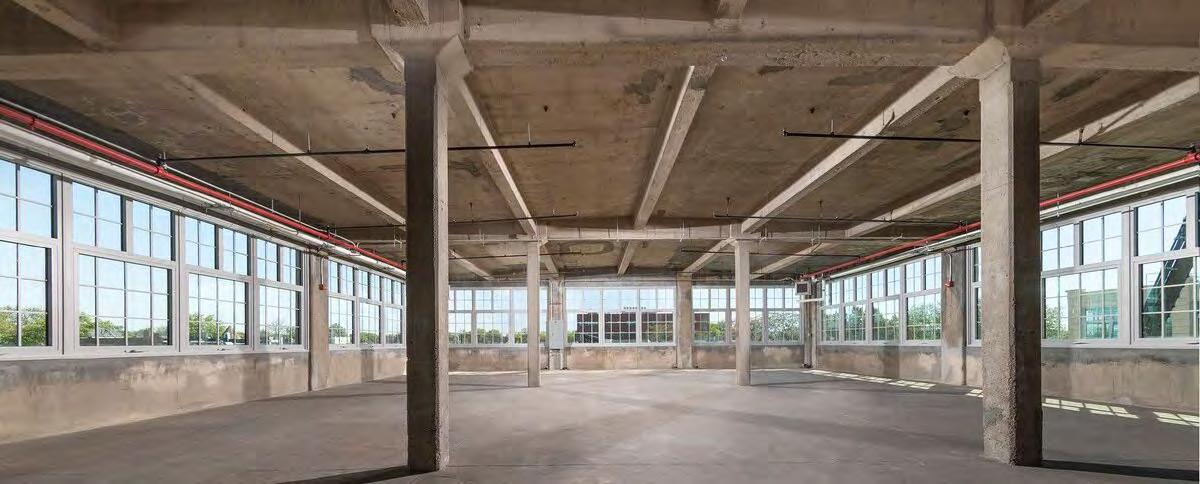 Post-renovation, the complex provides rental spaces for 25 small and medium sized manufacturing tenants and is a primary job generator for the area. Spaces feature high ceilings and large operable windows, providing ample daylight, views, and natural ventilation.