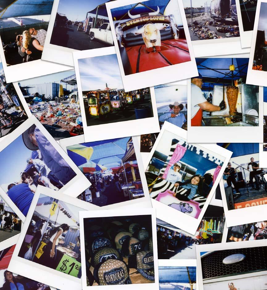 A collage of Instax film photos created in October 2023, over the course of four weekends at the Oakland Coliseum Swap Meet, for El Tímpano’s “Third Spaces” project.