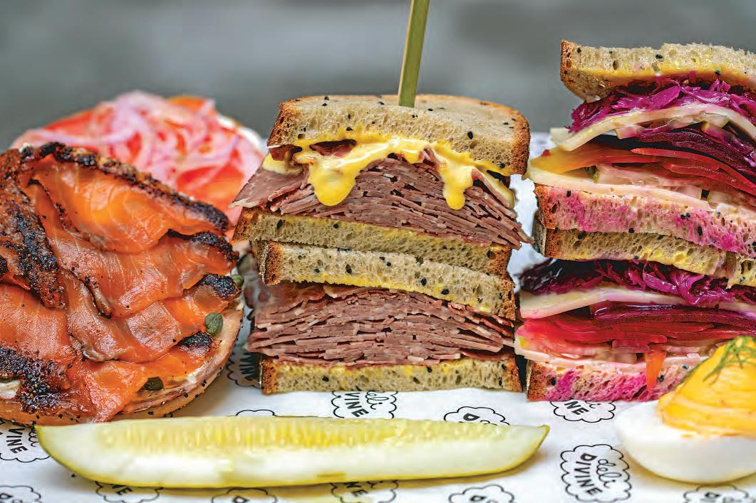 Specialtysandwichesstandoutasthemost popularitems,allofwhicharenamedafter Poremba’sgrandparents.TheFrieda,forinstance, comeswithhand-slicedhotpastramiandyellow mustard,whiletheHertastrikesabeautifulbalance betweenshavedbeets,coleslaw,slicedtomato, garlicpickleandSwisscheese.Pairsandwiches–availableonryeorpumpernickel–withyourchoice ofaccompaniment,suchasschmaltz-heavychicken kneidlach(matzoball)soupandshellronisalad–a specialrecipeinspiredbyFosterling’slategreatgrandmotherthatisnearanddeartoherheart.