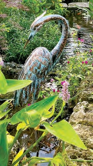 DonaldRichardson,SLWGSboard memberandco-chairofPond-O-Rama, designedhisownbackyardoasisto minimizemaintenanceandmaximize wildlife,outdoorlivingandyear-round pleasure.Hesuggeststakingtimeto factorponddepthandsize,locationand sunexposureondesiredplants.Healso recommends utilizingashelvingdesign toprotectagainsthungryherons,hawks andminks.“Ilessenthebirdriskby
