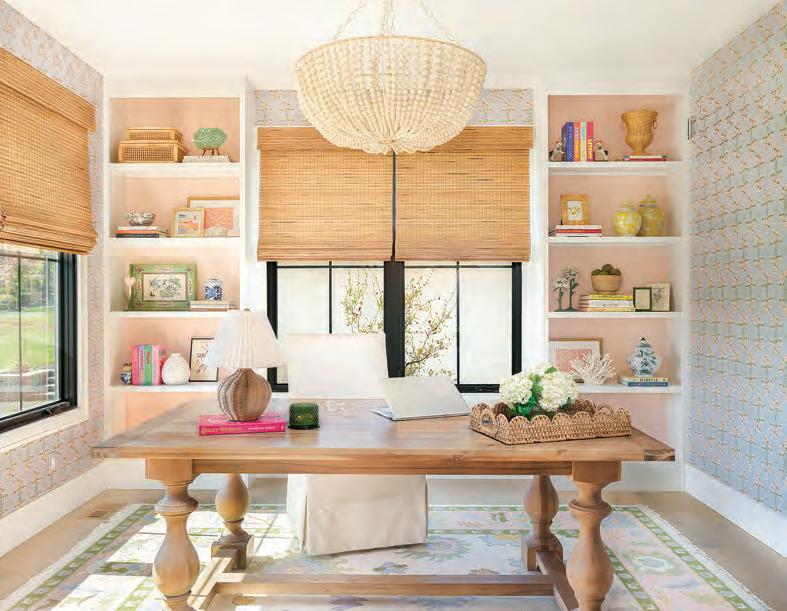 KarrBickinteriorsdesignteamleadAshleyObradovitscraftedthis of cefor a momwhoworksfromhome.Dynamictexturesintherug, chandelierandrattan nishesarelayeredatopcalmingpastelsto create a productive-yet-prettyatmosphere. PhotobyLisaMitchell