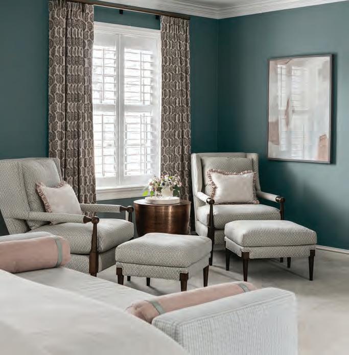 Idon’thaveonedesignstylethatIgravitate toward, whichis why mydesignportfoliocoversarangeofclients– whethertheylove moderndesign,classicneutralsorlotsofcolorandpattern.It keeps meonmy toesandmakesmydesignlifeinteresting. Ilisten to my clientsandget to knowthemand whattheyliketo createatruly personalized design.Itcreatesspacesthatfeellike homeforthem.