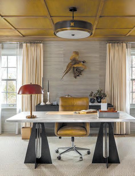 Beforeyou consultwithyourinterior designer,consider somekeyquestions aboutyourneedsforthespace. Anne MarieBoedges, presidentanddesignerat AnneMarieDesignStudio, sayssheruns througha checklistwithherclients,which determineswhatamenitieswillbeneeded for theroom (such asprinters,shredders and lestorage)aswellastheclient’s tech setup–beitalaptopordesktop computer withmultiplemonitors.She alsoconsidershowmanypeoplewillbe usingtheo ceandprivacyneeds; noise canbedampened withextra insulation andwithsoft nishes, althoughhard ooringisusuallypreferredto wall-towallcarpeting.