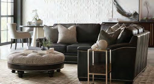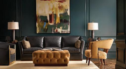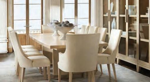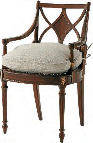 Gilt details mark the Sheraton’s Dainty Chair by Theodore alexander, which features fluted legs and a carved ‘X’ back with a flame-veneered panel. The seat is made of cane and topped with a generously filled silk tie-on cushion in the barley colorway. brodylamp.com